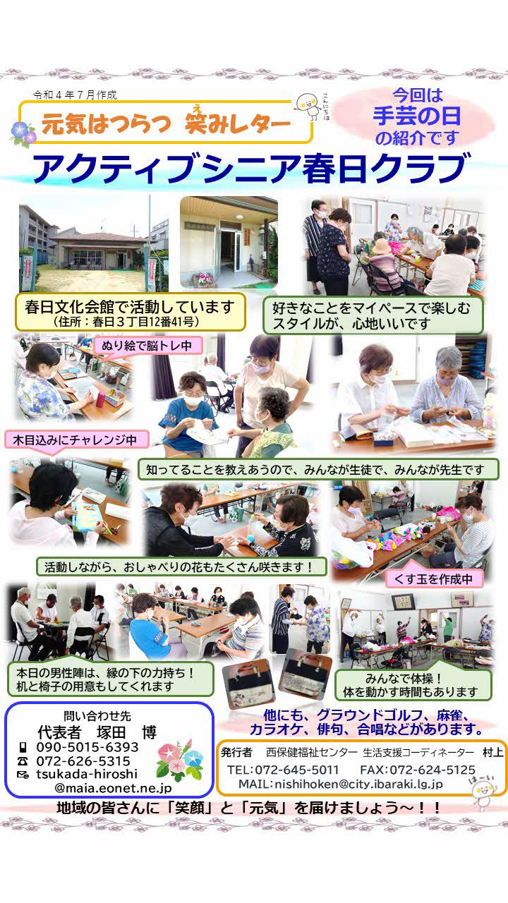 いきいき交流広場 (趣味活動やおしゃべりなどが楽しめる高齢者の居場所) アクティブシニア春日クラブ(春日文化会館)