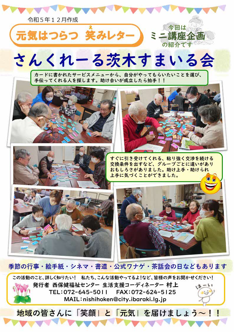 | 参加方法 | さんくれーる茨木にお住まいの方 |