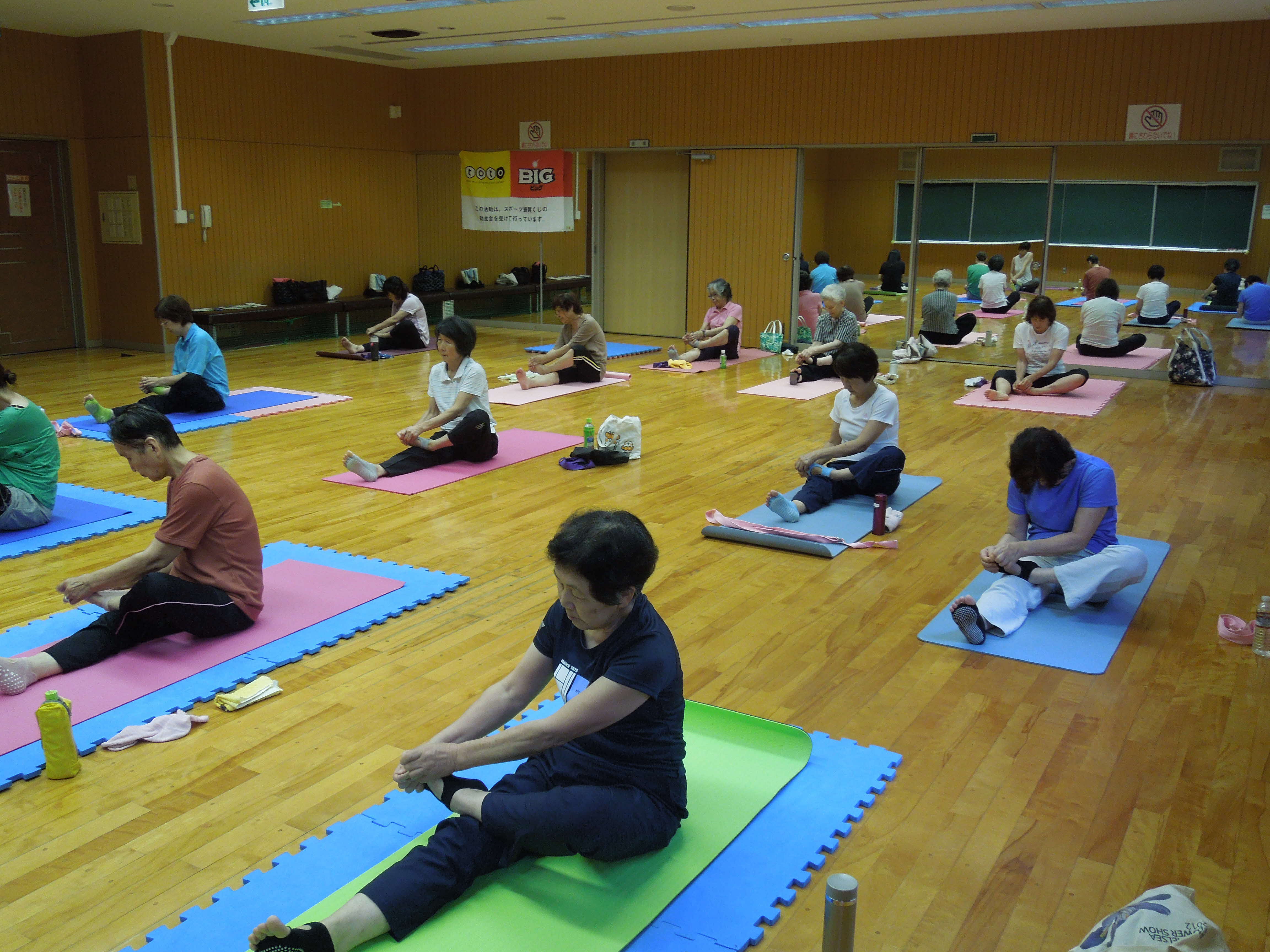 身体を柔軟にし、筋力や持久力、バランス能力の低下を予防し体幹を鍛えるヨガ教室で す。日曜日の朝の開催になっているので多世代の方が参加していますが一人でも気軽に 参加できる教室となっています。 |
