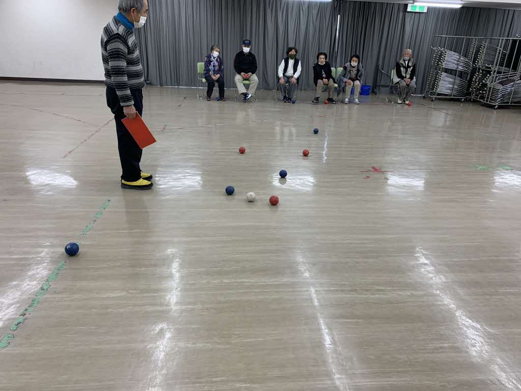 | 詳細内容 | ゲーム形式のボッチャを楽しんでいます。椅子に座って投げるので体力に自信がない方でも楽しめる内容になっています。 |