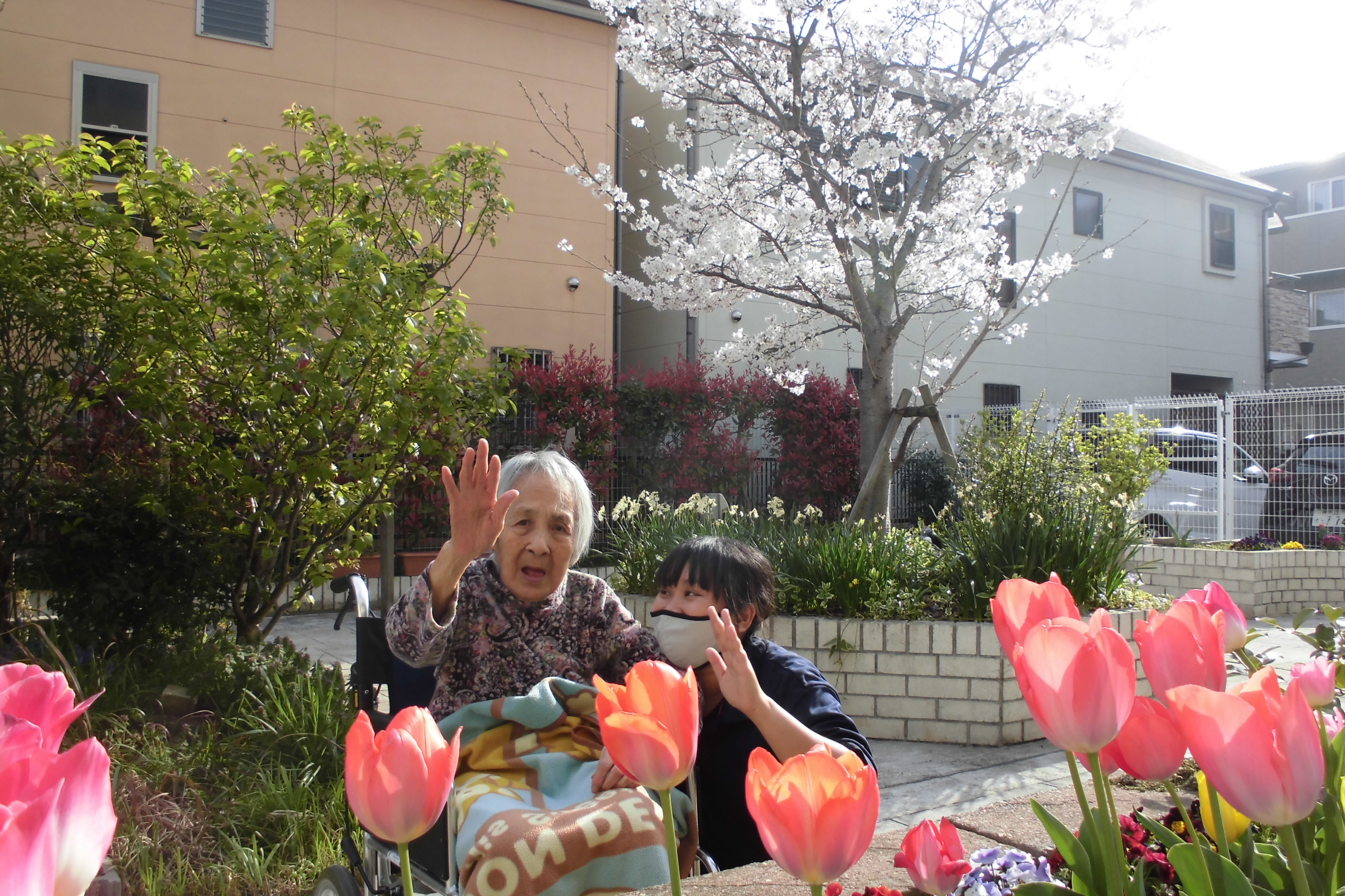 住宅街の一角にあるも、お庭では、ブドウやさくらんぼといった季節の果物や野菜が実っています。 一階にはデイサービス、二階、三階はグループホームとなっており、グループホームは、各階9名ずつの合計18名となっております。日曜日にはデイサービスがお休みの為、デイサービスの場所をお借りし、定期的にカラオケやイベントを行っています。 |
