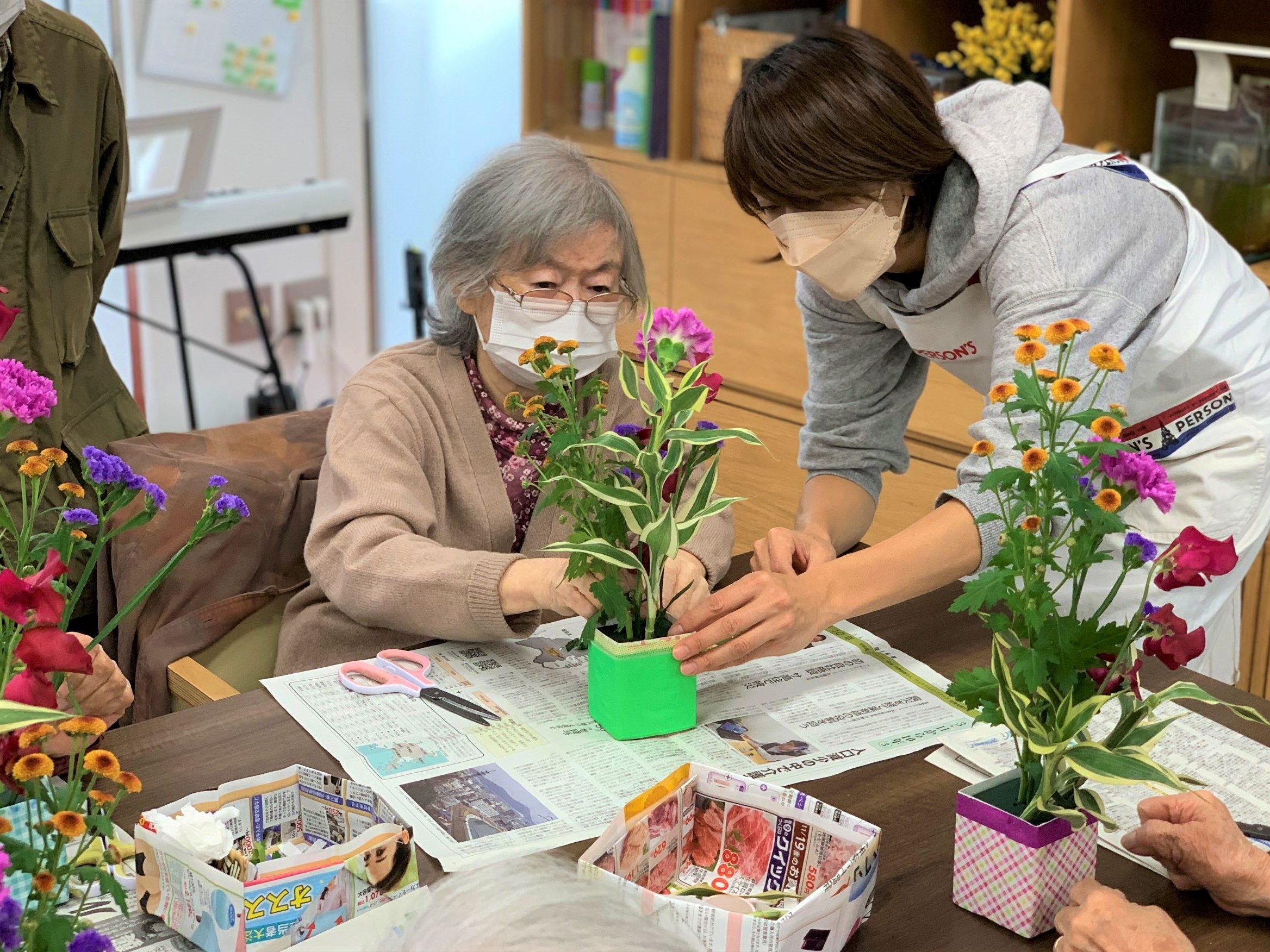 サービスフリーコメント | フラワーアレンジメント、音楽講師による歌会、講師指導の体操等のレクリエーションで楽しんで頂いています。 |