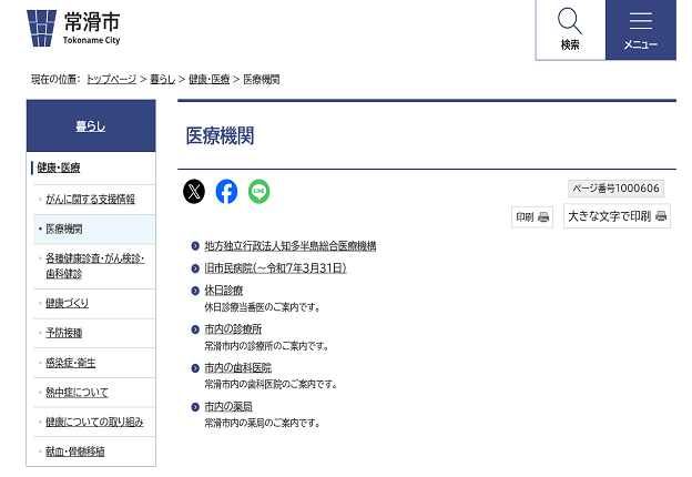 常滑市の医療機関に関するページです。
