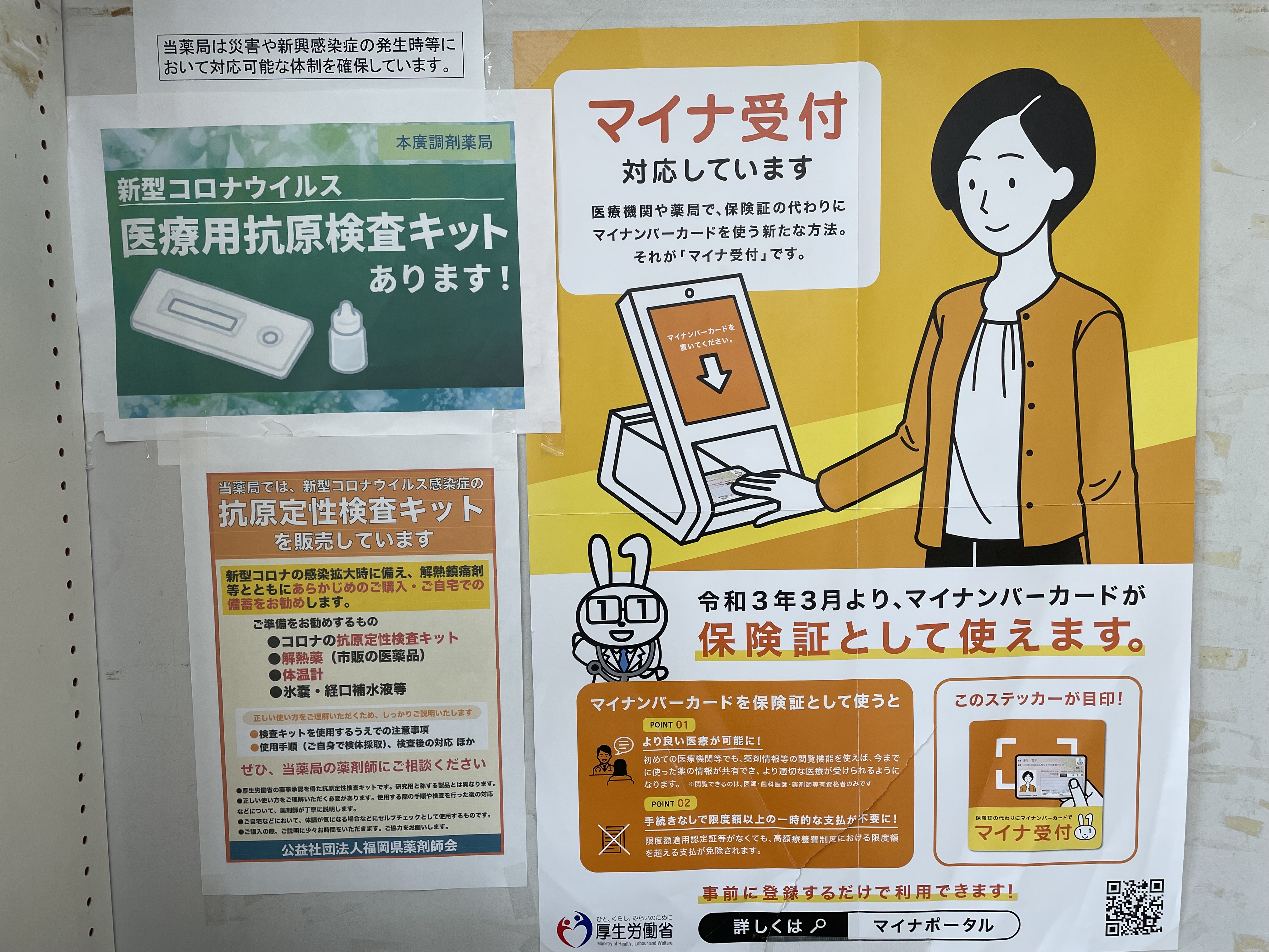 ※オンライン資格確認(マイナンバーカード受付)の体制を有しております。 当薬局では、薬剤情報等を取得・活用することにより、質の高い保険調剤の提供に努めています。 ※当薬局では、新型コロナウイルス感染症の抗原定性検査キットを販売しております。 営業時間外(休日・年末年始を含む)は、緊急連絡先090-4929-4657までご連絡ください。 ※当薬局は災害や新興感染症の発生時等において対応可能な体制を確保しています。 |